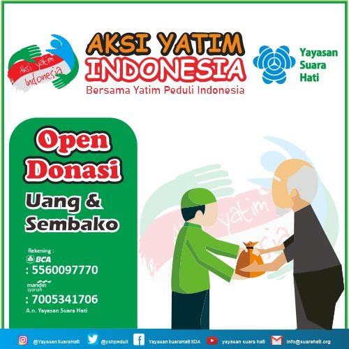 Aksi Yatim Indonesia merupakan program sosial kesejahteraan di Yayasan Suara Hati. Dilaksanakan sebulan sekali, pada hari kamis, anak-anak yatim akan ikut berperan dalam memberikan bantuan sembako kepada para lansia dhuafa. Tidak hanya aksi sosial, dalam program ini juga ada doa bersama dan pembacaaan QS. Al-Kahfi. Dan diakhiri dengan santunan untuk anak-anak yatim.